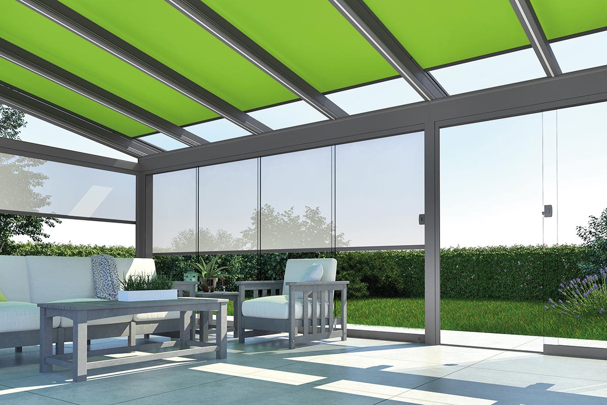 Für Wind- und Wetterschutz sorgen Glaselemente. Die Festverglasungen, Fenster- und Türelemente können in verschiedenen Breiten und Höhen kombiniert werden. Auch GLIDE Schiebeelemente können verkürzt als Fenster eingesetzt werden. Ihr traumhafter Panoramablick bleibt so erhalten. Alle Glaselemente lassen sich selbstverständlich jederzeit ergänzen oder um Vertikalmarkisen nachträglich erweitern.